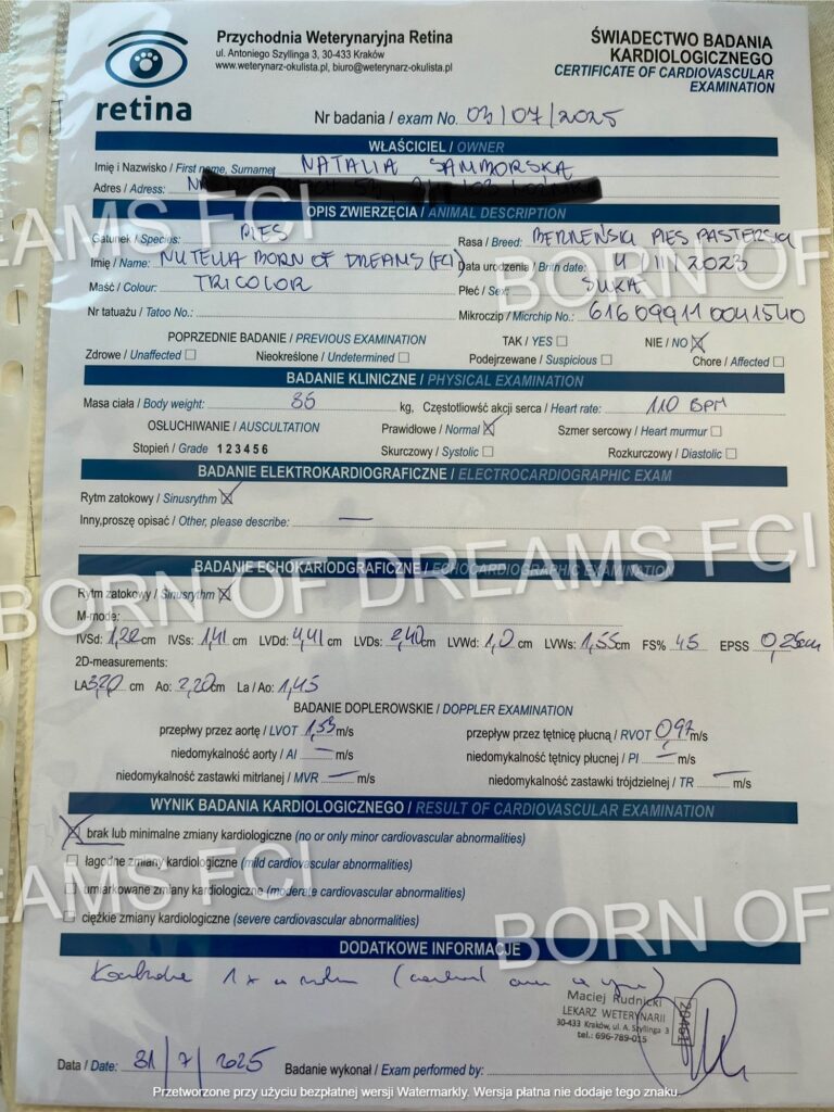 Nasza „Gaja” – NUTELLA Born of Dreams przeszła badania w kierunku chorób dziedzicznych serca – jest wolna od chorób serca!